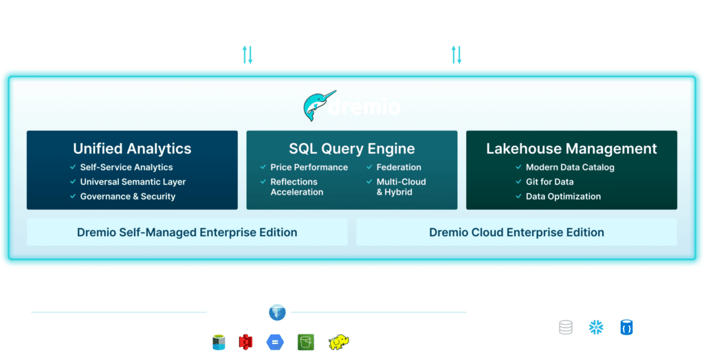 Dremio provides the fastest SQL engine with the best price-performance for Apache Iceberg, an Apache Iceberg catalog and Lakehouse Management service for next-gen dataops, and hybrid cloud deployment flexibility.